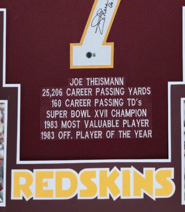 Framed Washington Joe Theismann Signed Stat Jersey BAS Authenticated