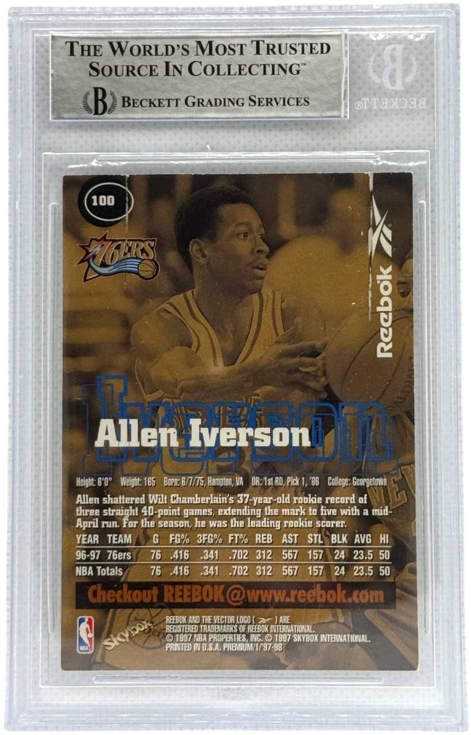 Allen Iverson Autographed 97-98 SkyBox Premium Card #100 BAS Authenticated