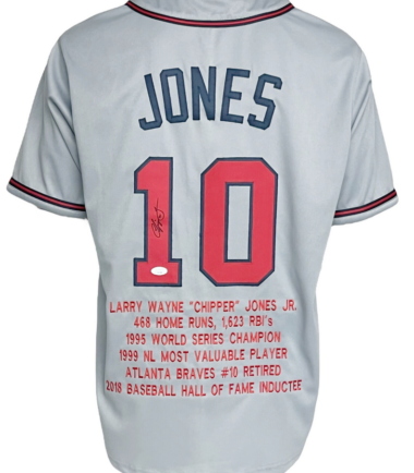 Atlanta Braves Chipper Jones Autographed Pro Style Grey Stat Jersey JSA Authenticated