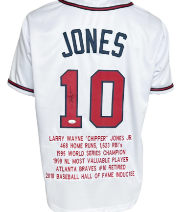 Atlanta Braves Chipper Jones Autographed Pro Style White Stat Jersey JSA Authenticated