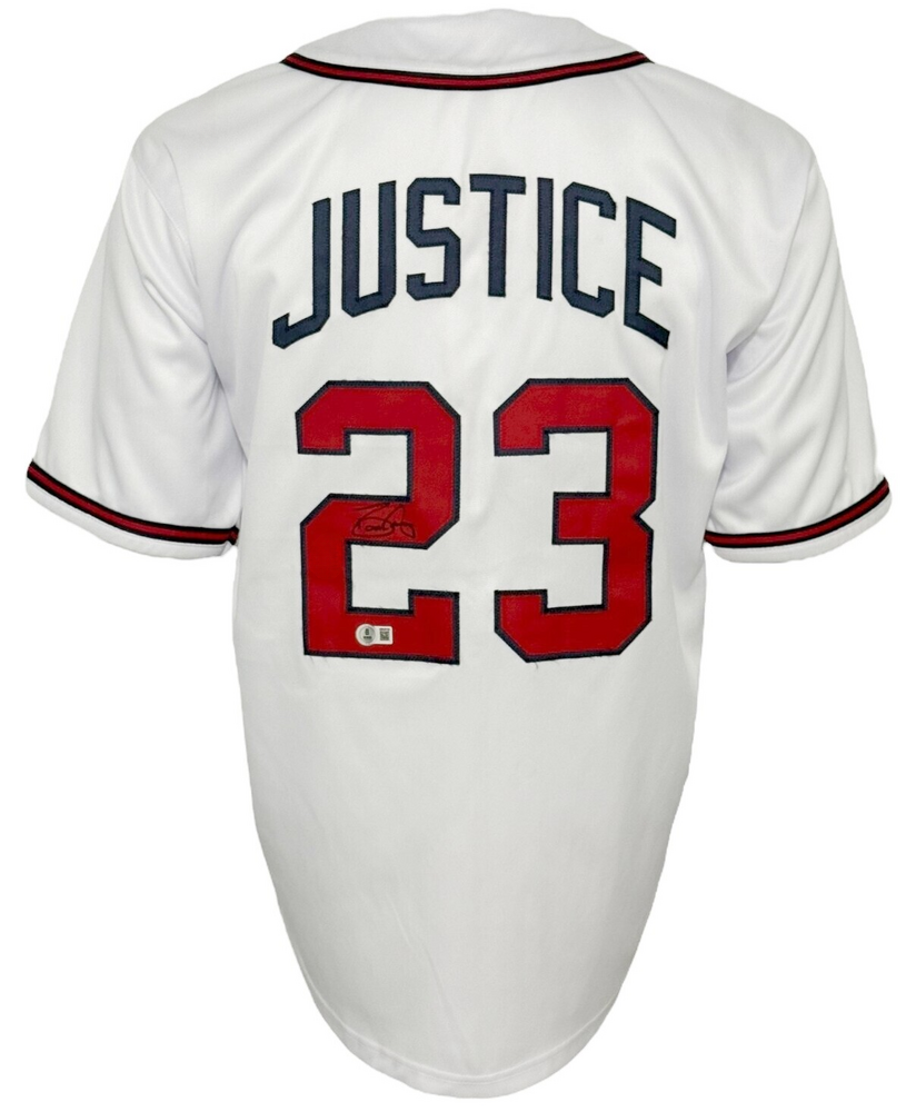 Atlanta Braves Dave Justice Autographed Pro Style White Jersey BAS Authenticated