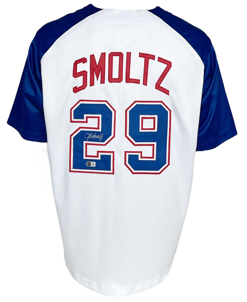 Atlanta Braves John Smoltz Autographed Pro Style White Throwback Jersey BAS Authenticated