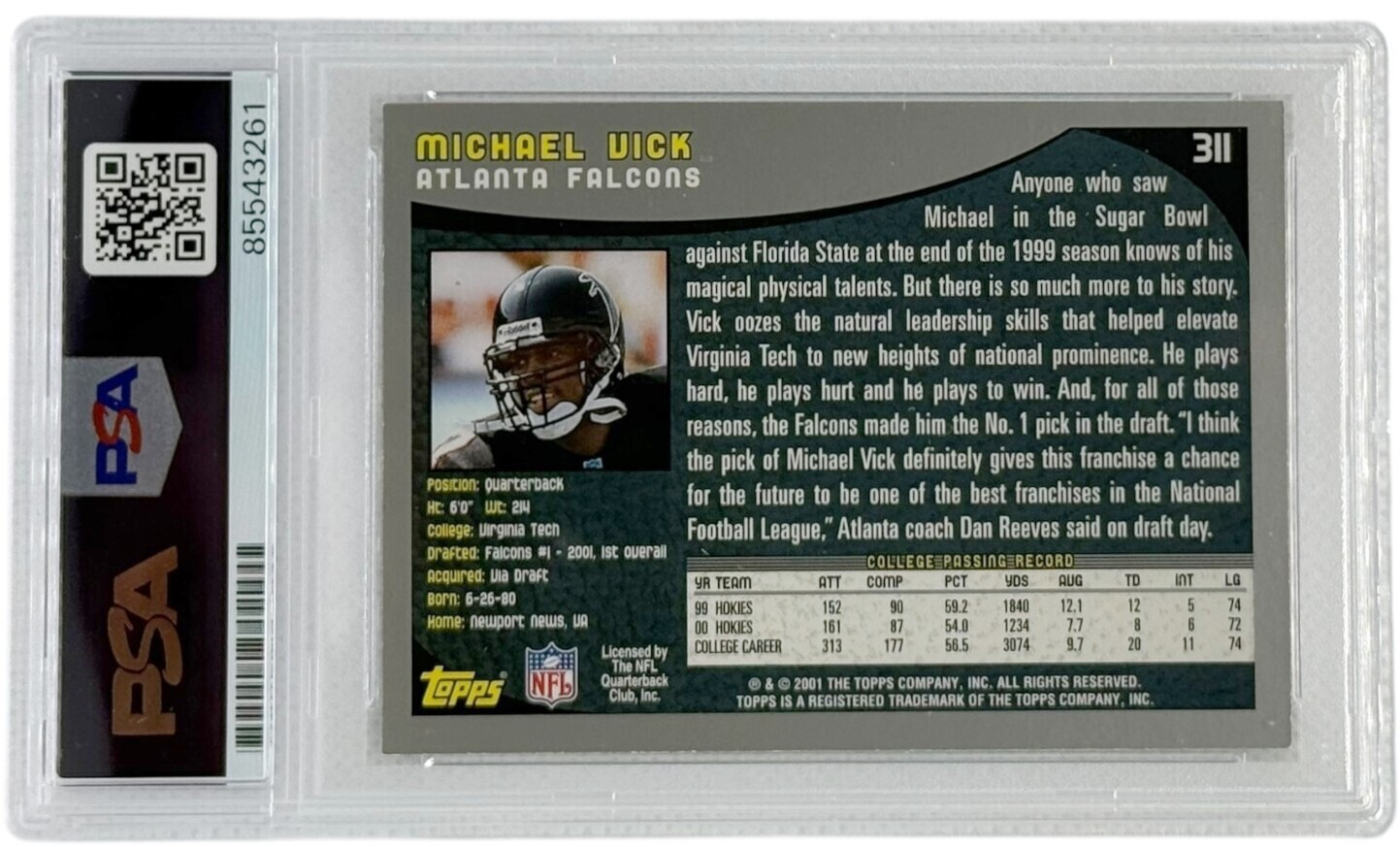 Atlanta Falcons Michael Vick Autographed 2001 Topps RC #311 PSA/DNA