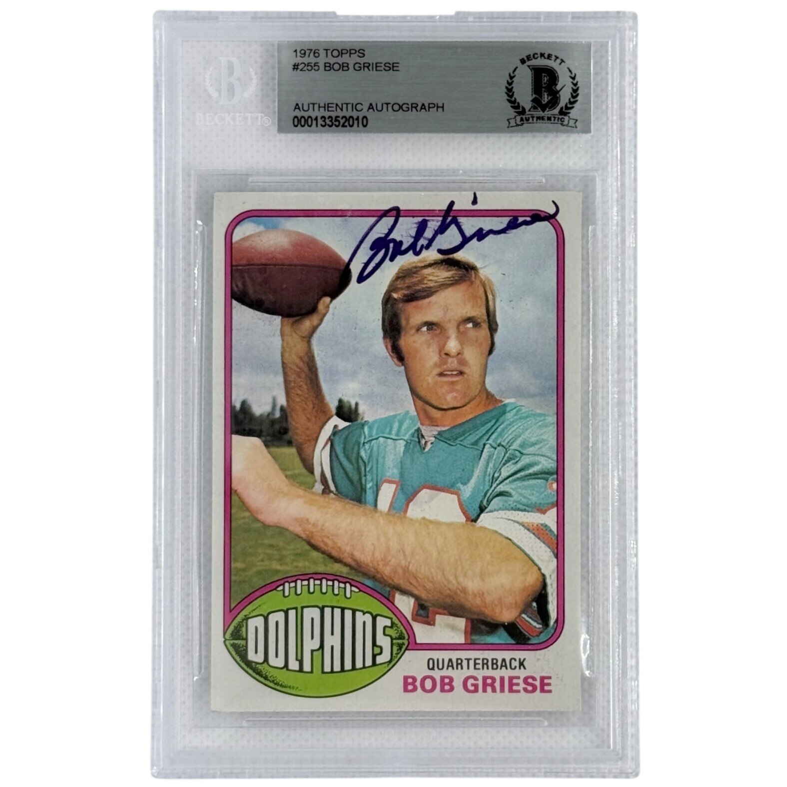 Bob Griese Autographed 1976 Topps #255 Beckett Authenticated