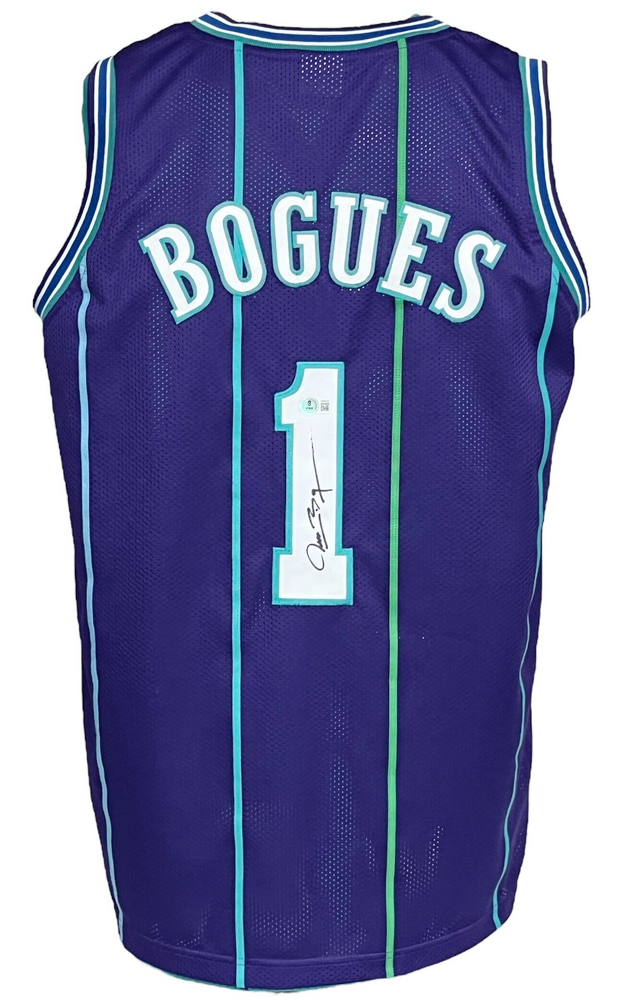 Charlotte Hornets Muggsy Bogues Autographed Pro Style Purple Jersey BAS Authenticated