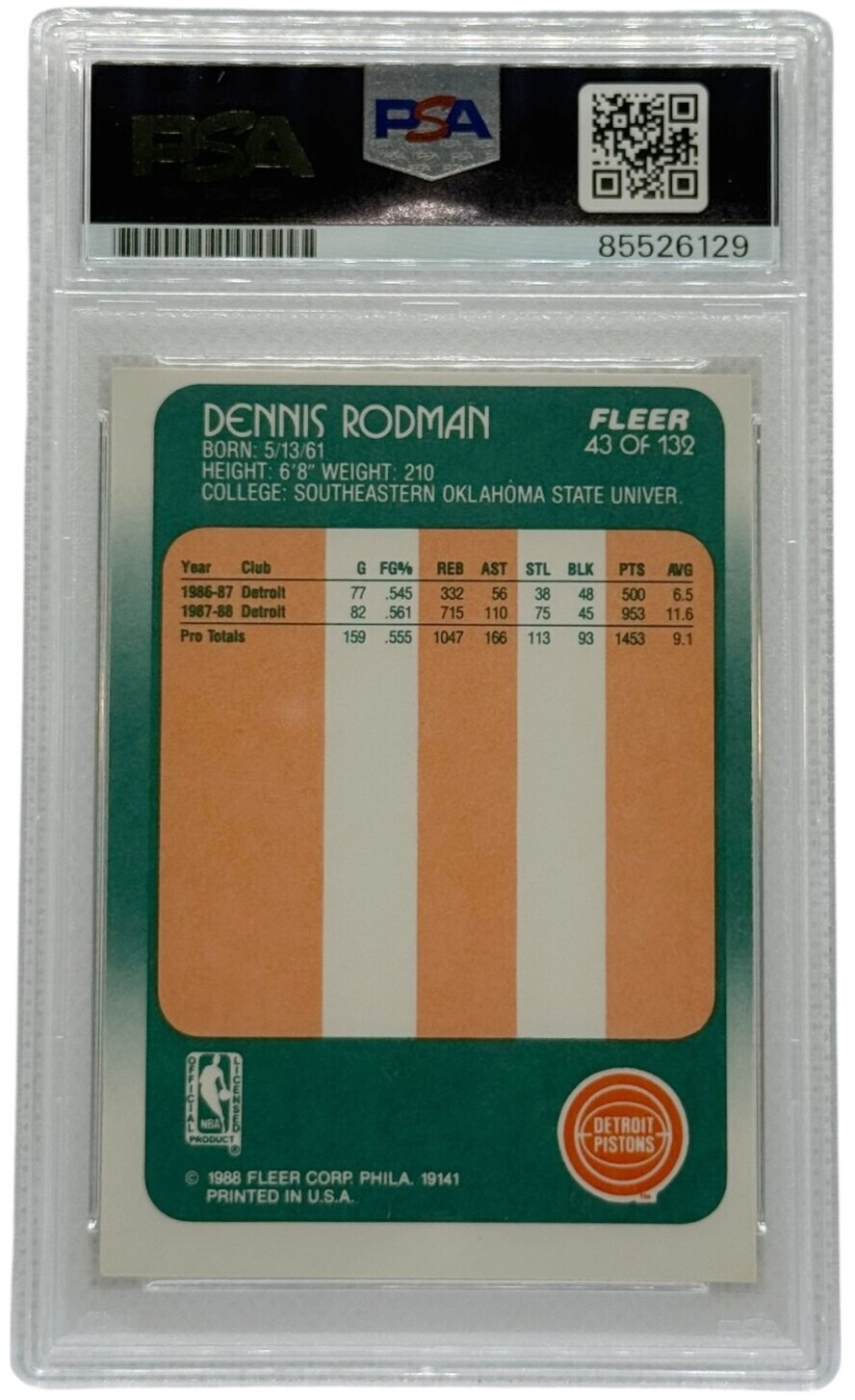 Chicago Bulls Dennis Rodman 88-89 Fleer Rookie Card #43 PSA Authenticated
