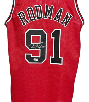 Chicago Bulls Dennis Rodman Autographed Pro Style Red Jersey BAS Authenticated