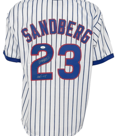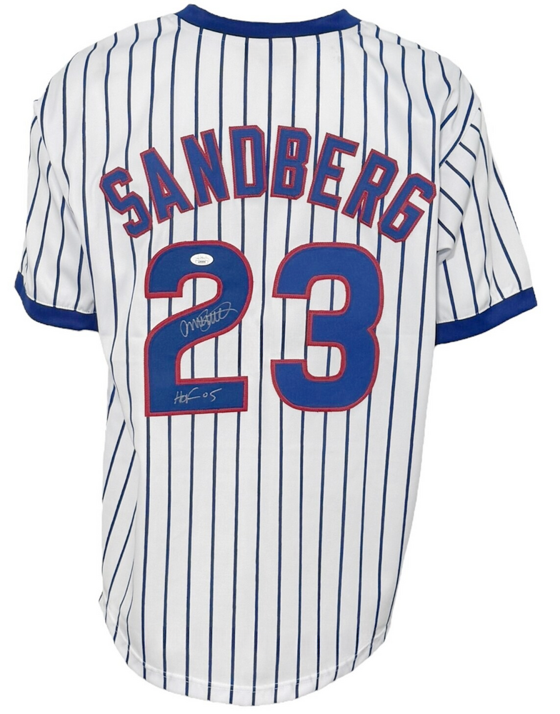 Chicago Cubs Ryne Sandberg Autographed Pro Style Pinstripe Jersey “HOF 05” JSA Authenticated