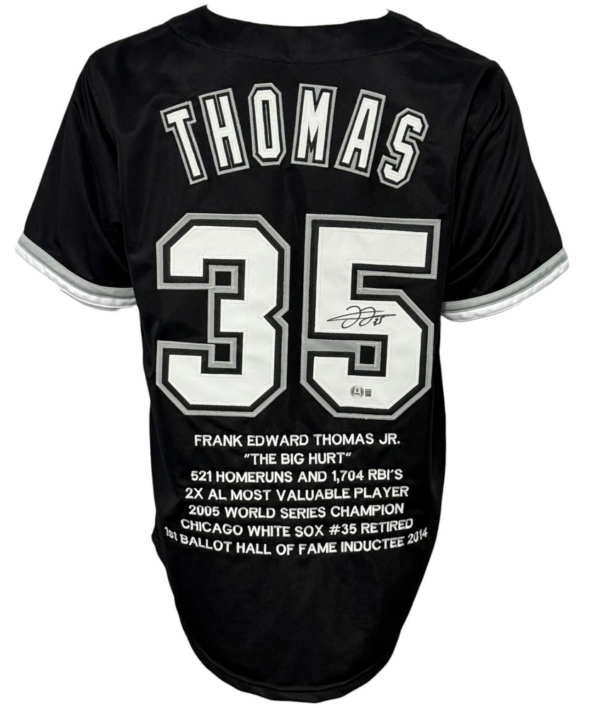 Chicago White Sox Frank Thomas Autographed Pro Style Black Stat Jersey BAS Authenticated