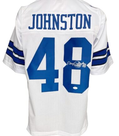 Dallas Cowboys Daryl “Moose” Johnston Autographed Pro Style White Jersey JSA Authenticated