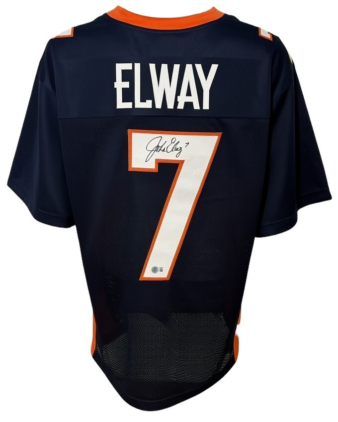 Denver Broncos John Elway Autographed Pro Style Navy Blue Jersey BAS Authenticated
