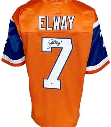 Denver Broncos John Elway Autographed Pro Style Orange Jersey BAS Authenticated