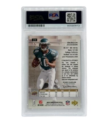 Desean Jackson Autographed 2008 Upper Deck Premier Prospects Rookie Card #214 PSA Authenticated