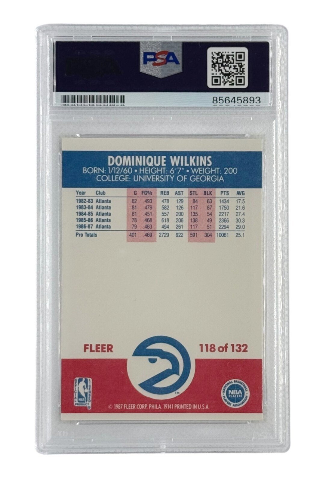 Dominique Wilkins Autographed 1987 Fleer #118 PSA Authenticated