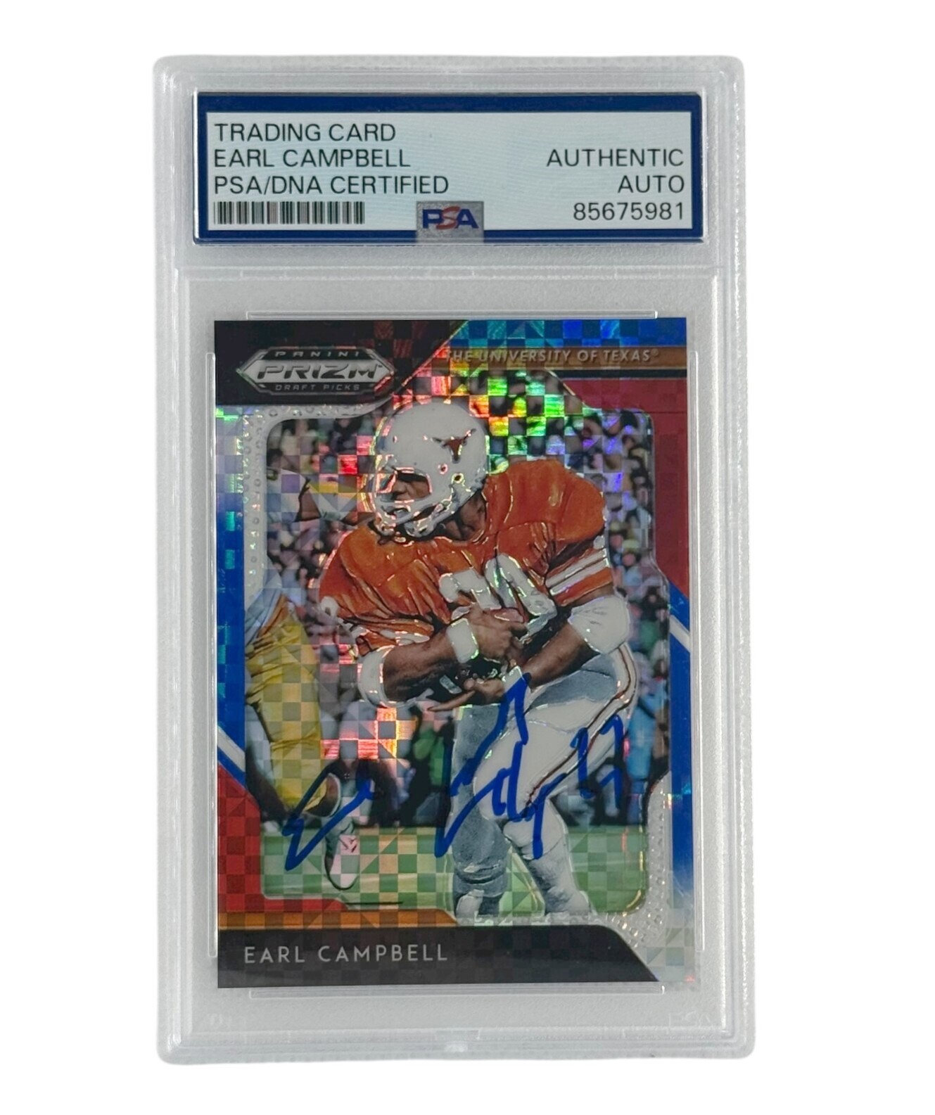 Earl Campbell Autographed 2023 Panini Red White & Blue Prizm PSA Authenticated