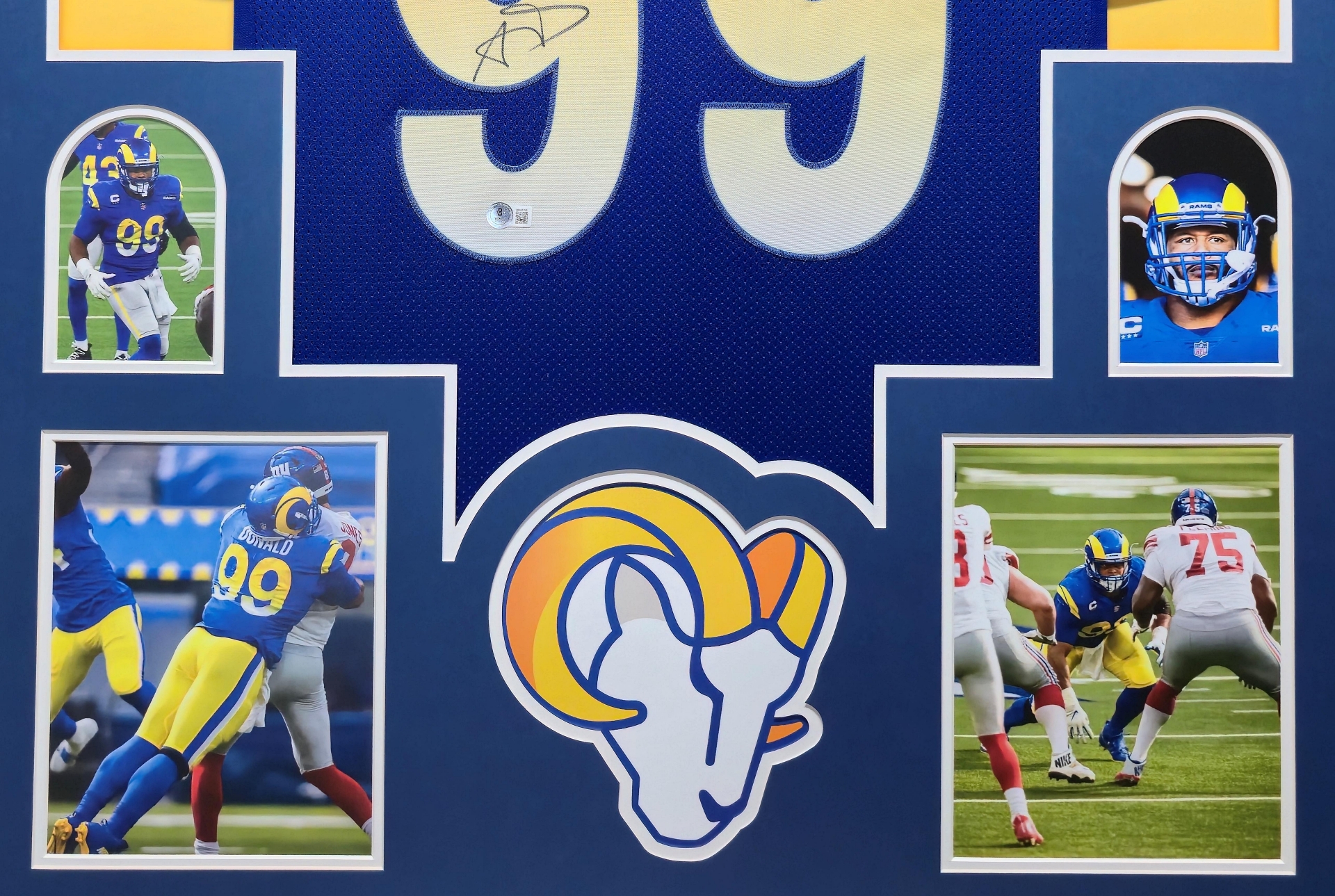 Framed Aaron Donald Los Angeles Rams Pro Style Custom Blue Jersey BAS Authenticated