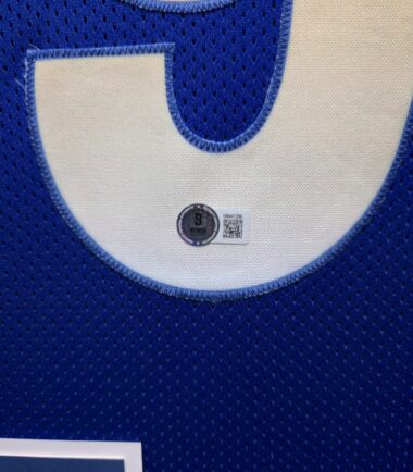 This item is professionally framed, it measures 32”x40” inside , 42”x34” outside , using UV protective Acrylic glass for safe keeping and safe transport, team color matting, black moulding and hanging hooks on the back. All additional items in frame seen in pictures included. 100% ready to hang in your fan cave.