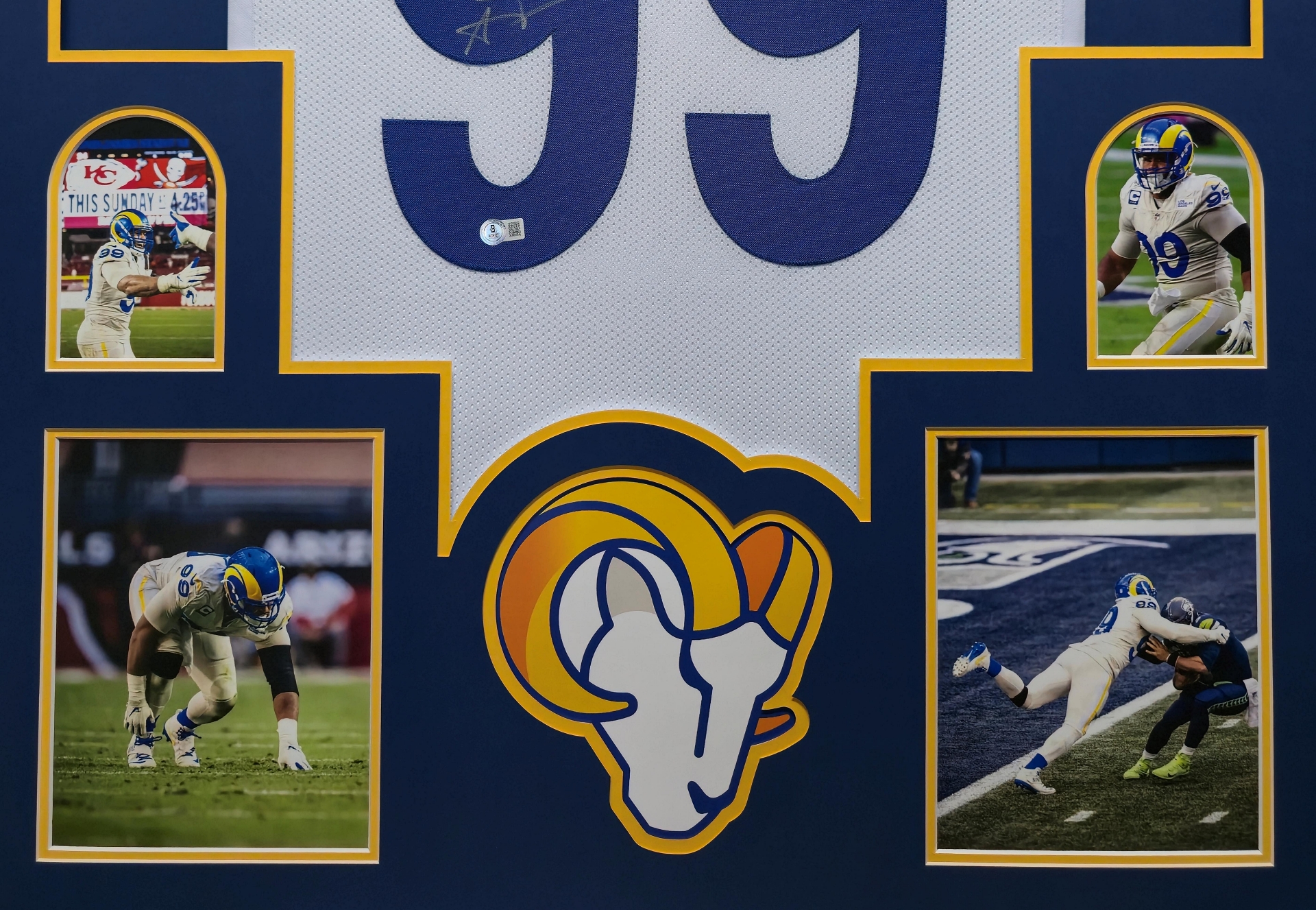 Framed Aaron Donald Los Angeles Rams Pro Style Custom White Jersey BAS Authenticated
