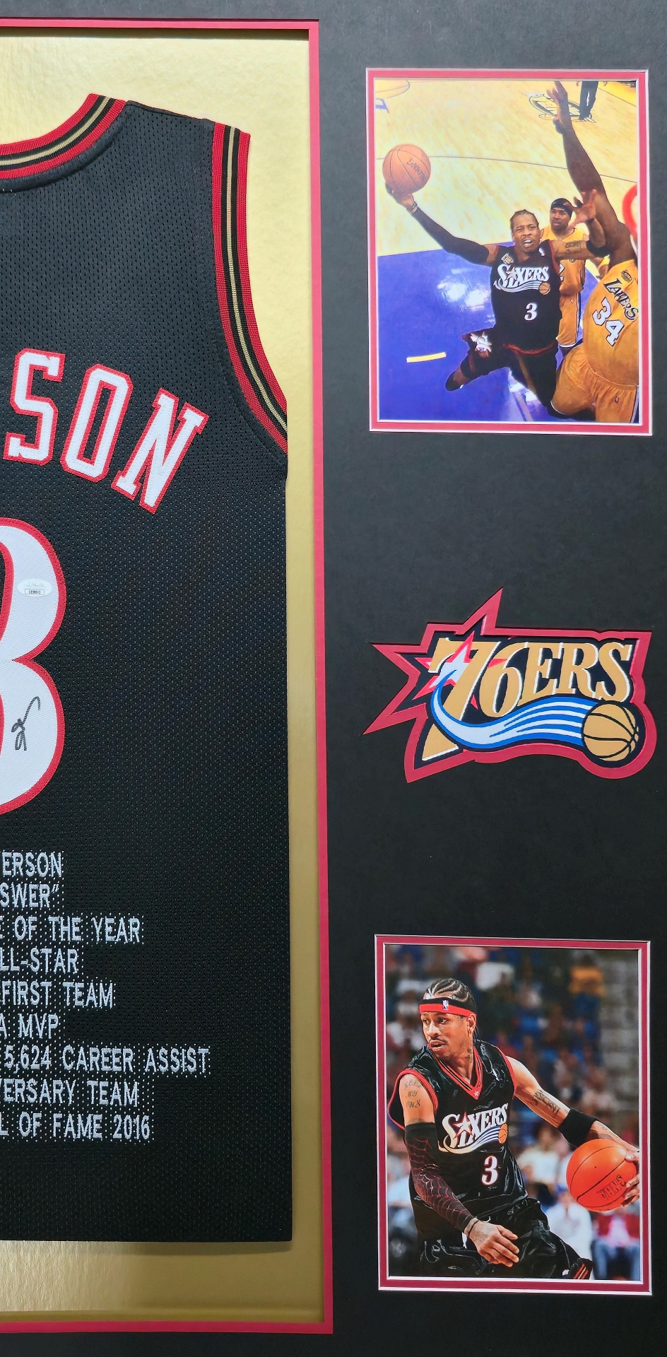 Framed Allen Iverson Philadelphia 76ers Pro Style Custom Black Stat Jersey BAS Authenticated