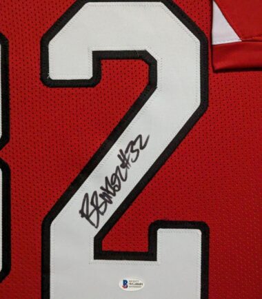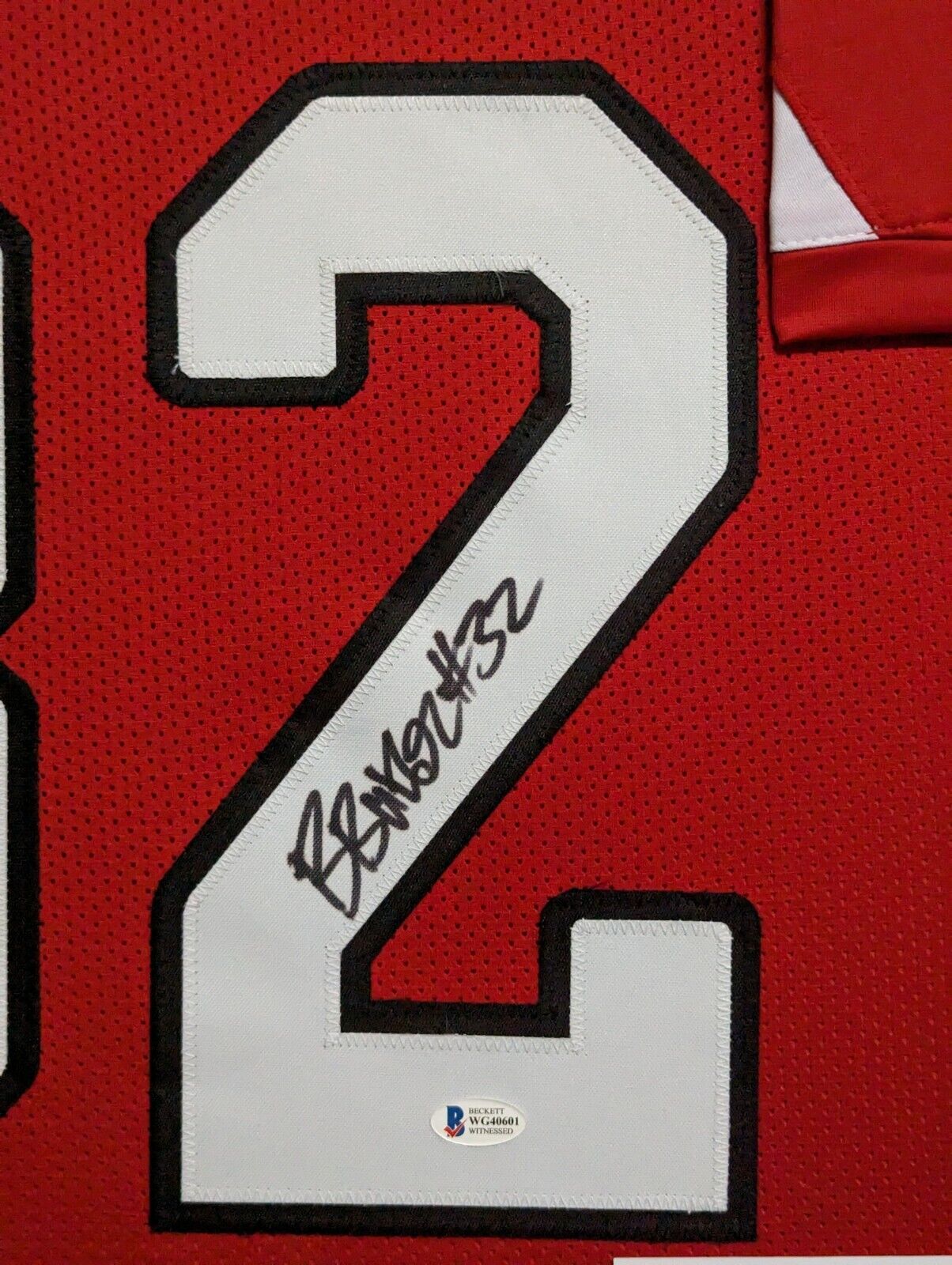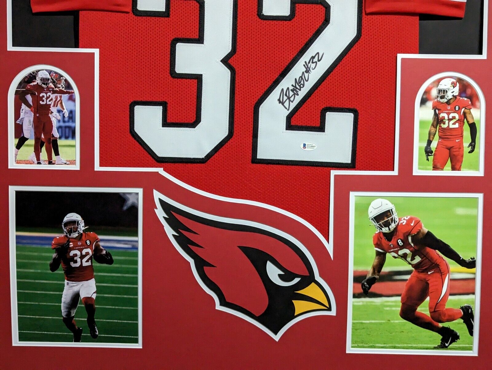 Framed Budda Baker hand signed Arizona Cardinals style custom jersey.Beckett COAThe authentication is from Beckett. This signature is authenticated by a representative of Beckett! 100% AUTHENTIC!!! The jersey has fully stitched numbers on the front and back. No tags or logos. This is not an official NFL jersey but it is very high quality. It is a great item and a must for all great sports fans!This item is professionally framed, it measures 32”x40” inside , 42”x34” outside , using UV protective Acrylic glass for safe keeping and safe transport, team color matting, black moulding and hanging hooks on the back. All additional items in frame seen in pictures included. 100% ready to hang in your fan cave.