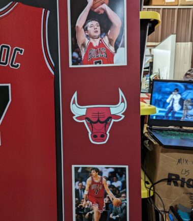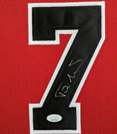 Custom Framed Toni Kukoc hand signed Chicago Bulls style custom jersey JSA Hologram and COA The authentication is from JSA. This signature is WITNESSED by a representative of JSA! 100% AUTHENTIC!!! The jersey has fully stitched numbers on the front and back. It is a great item and a must for all great sports fans! This item is professionally framed, it measures 32”x40” inside , 42”x34” outside , using UV protective Acrylic glass for safe keeping and safe transport, team color matting, black moulding and hanging hooks on the back. All additional items in frame seen in pictures included. 100% ready to hang in your fan cave. Returns accepted if item is not as described or damaged and must be returned within 7 days of delivery to buyer.