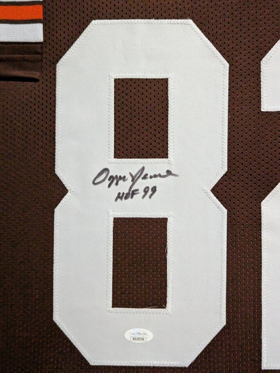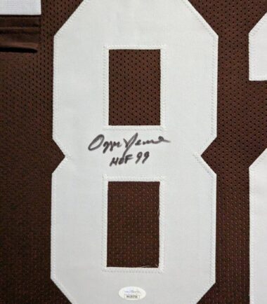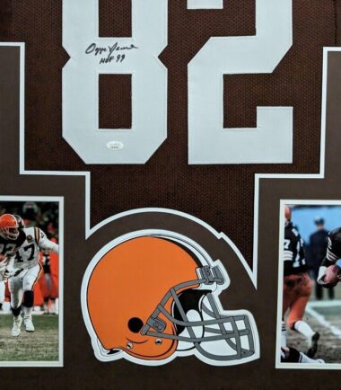 FRAMED CLEVELAND BROWNS OZZIE NEWSOME AUTOGRAPHED INSCRIBED JERSEY JSA COA