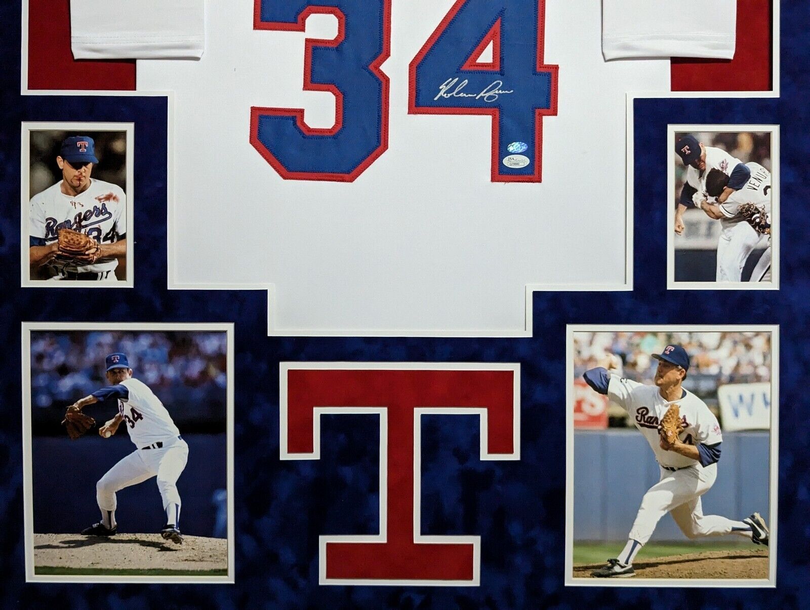 FRAMED IN SUEDE TEXAS RANGERS NOLAN RYAN AUTOGRAPHED SIGNED JERSEY JSA COA