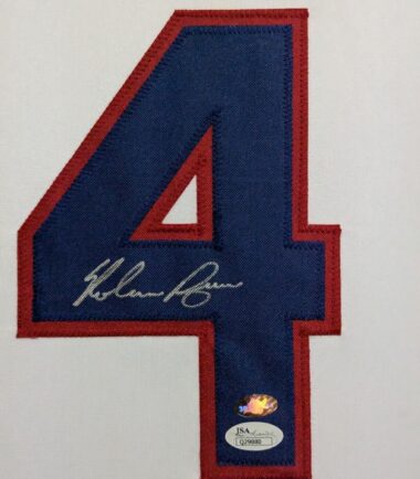 Custom Framed in SUEDE Nolan Ryan hand signed Texas Rangers style custom jersey.JSA Hologram and COAThe authentication is from JSA. This signature is authenticated by a representative of JSA! 100% AUTHENTIC!!! The jersey has fully stitched numbers on the front and back. It is a great item and a must for all great sports fans!This item is professionally framed, it measures 32”x40” inside , 42”x34” outside , using UV protective Acrylic glass for safe keeping and safe transport, team SUEDE color matting, black moulding and hanging hooks on the back. All additional items in frame seen in pictures included. 100% ready to hang in your fan cave. Shipping and handling is $49.99 to domestic United States using FedEx ground. All international shipping is made through Ebay global shipping. 6% sales tax applies to PA residents. We ship multiple times a week and your item will ship within 3 days of purchase. Local pick up is accepted. Returns accepted if item is not as described or damaged and must be returned within 7 days of delivery to buyer. All payments accepted through Paypal and are expected within 3 days of purchase. I aim to make every transaction smooth and will leave feedback, please do so in return. I will combine shipping where possible, so please wait for invoice on multiple purchases. Any questions please ask!! Thank you for looking!!! If you like the framing, feel free to ask how you can have your personal items framed. We also have wholesale pricing for dealers.