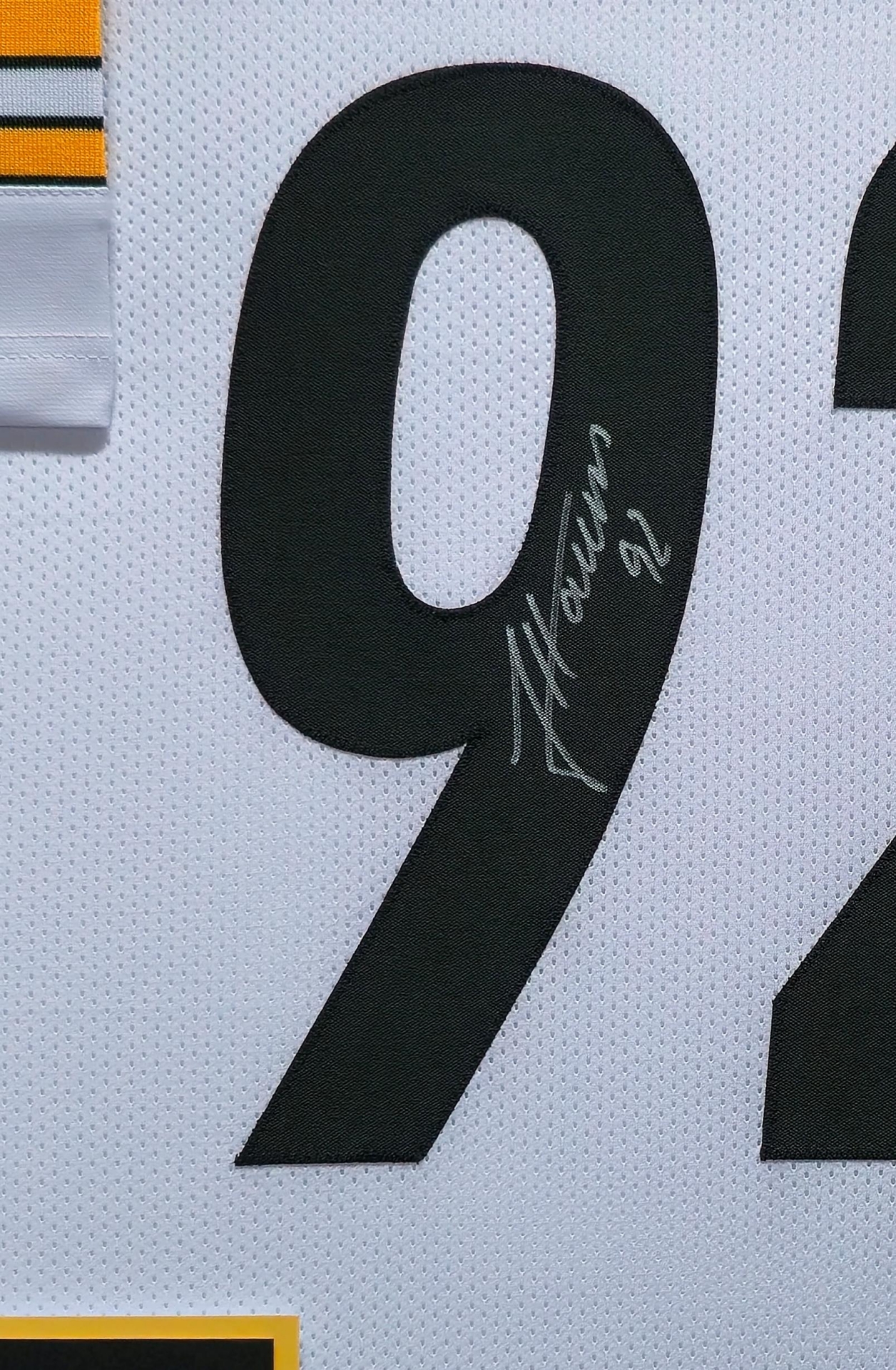 The jersey has fully stitched numbers on the front and back.  It is a great item and a must for all great sports fans!