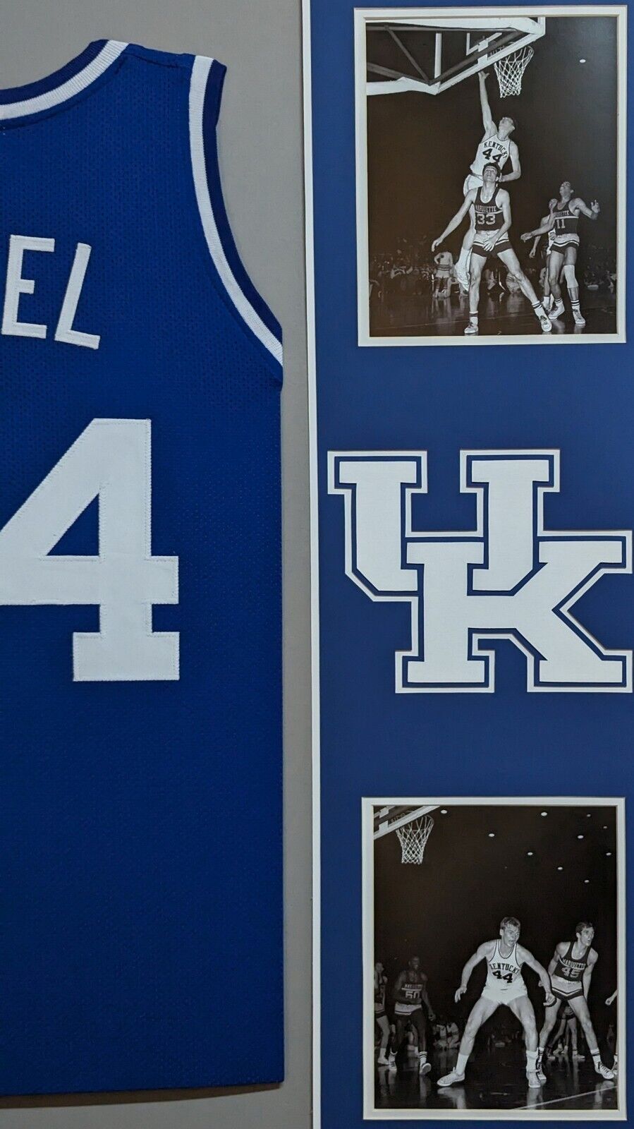 Custom Framed Dan Issel hand signed Kentucky Wildcats jersey JSA Hologram and COA The authentication is from JSA. This signature is WITNESSED by a representative of JSA! 100% AUTHENTIC!!! The jersey has fully stitched numbers on the front and back. It is a great item and a must for all great sports fans! This item is professionally framed, it measures 32”x40” inside , 42”x34” outside , using UV protective Acrylic glass for safe keeping and safe transport, team color matting, black moulding and hanging hooks on the back. All additional items in frame seen in pictures included. 100% ready to hang in your fan cave. Returns accepted if item is not as described or damaged and must be returned within 7 days of delivery to buyer.