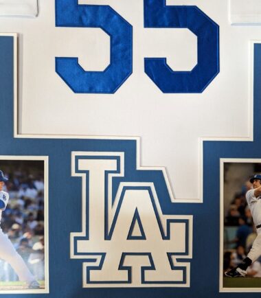Custom Framed Russell Martin Los Angeles Dodgers jersey displayThis item is professionally framed, it measures 32”x40” inside , 42”x34” outside , using UV protective Acrylic glass for safe keeping and safe transport, team color matting, black moulding and hanging hooks on the back. All additional items in frame seen in pictures included. 100% ready to hang in your fan cave. Free shipping to domestic United States using FedEx ground. All international shipping is made through Ebay global shipping. 6% sales tax applies to PA residents. We ship multiple times a week and your item will ship within 3 days