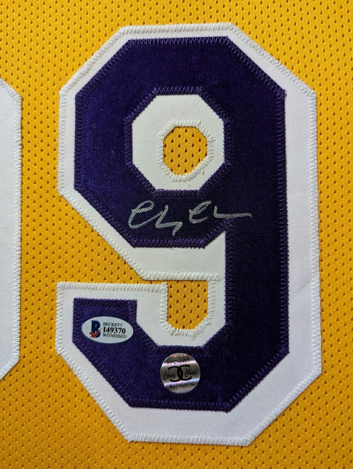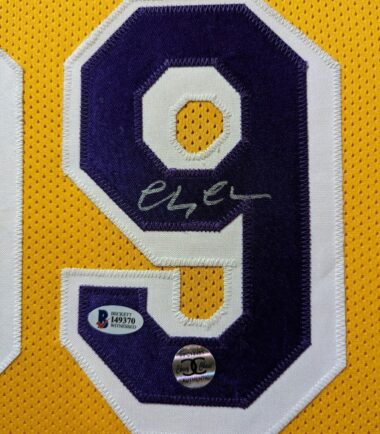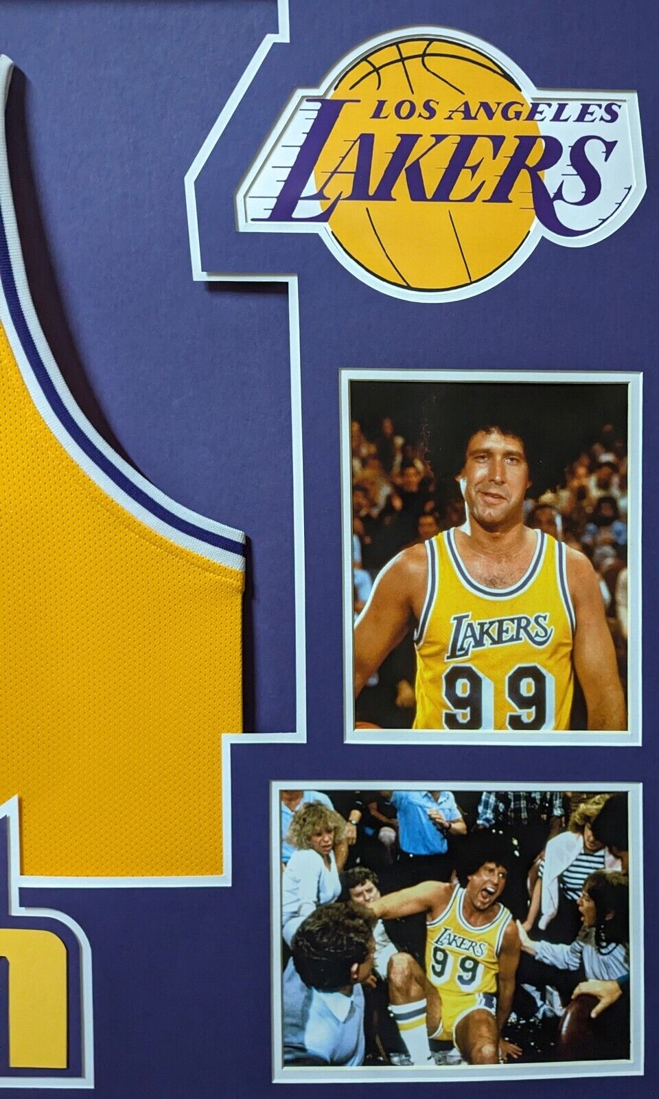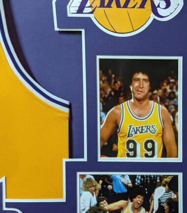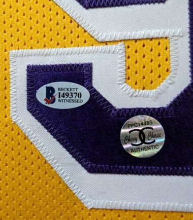 Custom Framed Chevy Chase hand signed Los Angeles Lakers Fletch custom jersey. Beckett Hologram and COA The authentication is from Beckett. This signature is WITNESSED by a representative of Beckett! 100% AUTHENTIC!!! The jersey has fully stitched numbers on the front and back. It is a great item and a must for all great sports fans! This item is professionally framed, it measures 32”x40” inside , 42”x34” outside , using UV protective Acrylic glass for safe keeping and safe transport, team color matting, black moulding and hanging hooks on the back. All additional items in frame seen in pictures included. 100% ready to hang in your fan cave. Returns accepted if item is not as described or damaged and must be returned within 7 days of delivery to buyer.