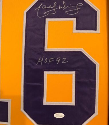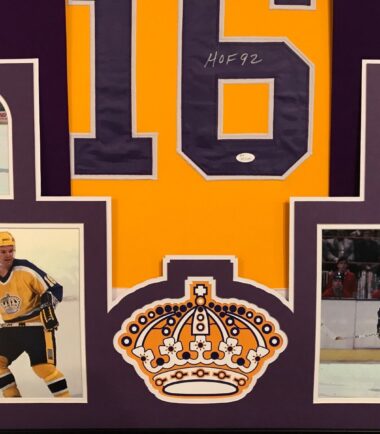 Custom Framed Marcel Dionne hand signed inscribed “HOF 92” L.A. Kings custom jersey. JSA Hologram and COA(#WP721448) The authentication is from JSA. This signature is not authenticated by opinion but it is WITNESSED by a representative of JSA! 100% AUTHENTIC!!! The jersey has fully stitched numbers on the front and back. It is a great item and a must for all great sports fans! This item is professionally framed, it measures 32”x40” inside , 42”x34” outside , using UV protective Acrylic glass for safe keeping and safe transport, team color matting, black moulding and hanging hooks on the back. All additional items in frame seen in pictures included. 100% ready to hang in your fan cave. Returns accepted if item is not as described or damaged and must be returned within 7 days of delivery to buyer.