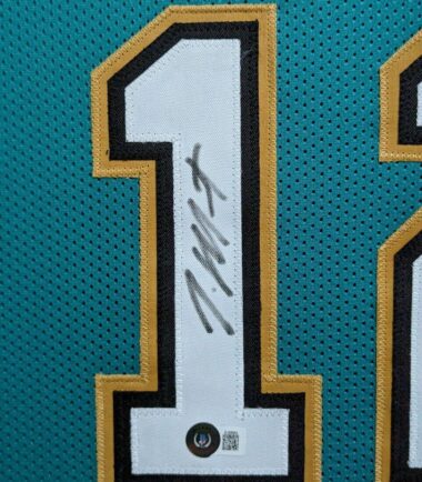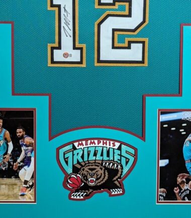 Custom Framed Ja Morant hand signed Memphis Grizzlies style custom jersey.Beckett Hologram and COAThe authentication is from Beckett. This signature is WITNESS authenticated by a representative of Beckett! 100% AUTHENTIC!!! The jersey has fully stitched numbers on the front and back. It is a great item and a must for all great sports fans!This item is professionally framed, it measures 32”x40” inside , 42”x34” outside , using UV protective Acrylic glass for safe keeping and safe transport, team color matting, black moulding and hanging hooks on the back. All additional items in frame seen in pictures included. 100% ready to hang in your fan cave. Shipping and handling is $49.99 to domestic United States using FedEx ground. All international shipping is made through Ebay global shipping. 6% sales tax applies to PA residents. We ship multiple times a week and your item will ship within 3 days of purchase. Local pick up is accepted. Returns accepted if item is not as described or damaged and must be returned within 7 days of delivery to buyer. All payments accepted through Paypal and are expected within 3 days of purchase. I aim to make every transaction smooth and will leave feedback, please do so in return. I will combine shipping where possible, so please wait for invoice on multiple purchases. Any questions please ask!! Thank you for looking!!! If you like the framing, feel free to ask how you can have your personal items framed. We also have wholesale pricing for dealers.