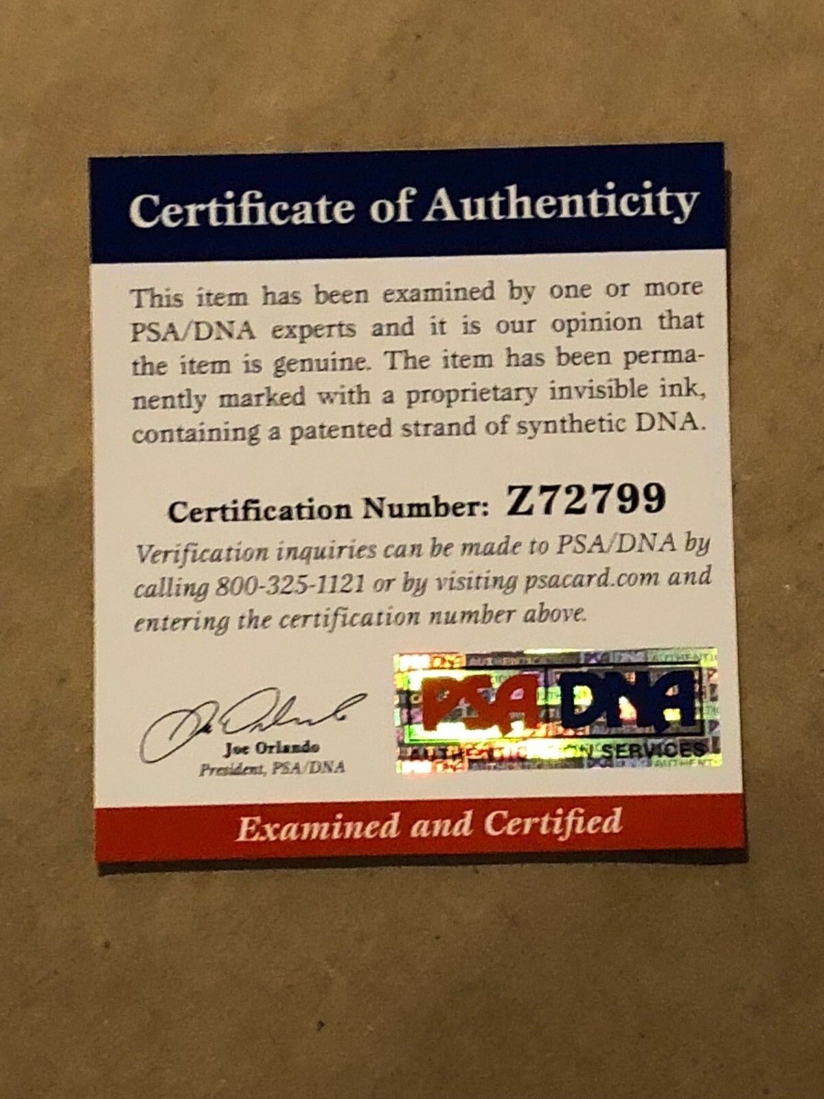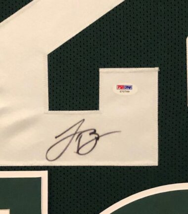 Custom Framed Le’Veon Bell hand signed Michigan State Spartans custom jersey. PSA Hologram and COA(#Z72799) The authentication is from PSA. This signature is not authenticated by opinion but it is WITNESSED by a representative of PSA! 100% AUTHENTIC!!! The jersey has fully stitched numbers on the front and back. It is a great item and a must for all great sports fans! This item is professionally framed, it measures 32”x40” inside , 42”x34” outside , using UV protective Acrylic glass for safe keeping and safe transport, team color matting, black moulding and hanging hooks on the back. All additional items in frame seen in pictures included. 100% ready to hang in your fan cave. Returns accepted if item is not as described or damaged and must be returned within 7 days of delivery to buyer.
