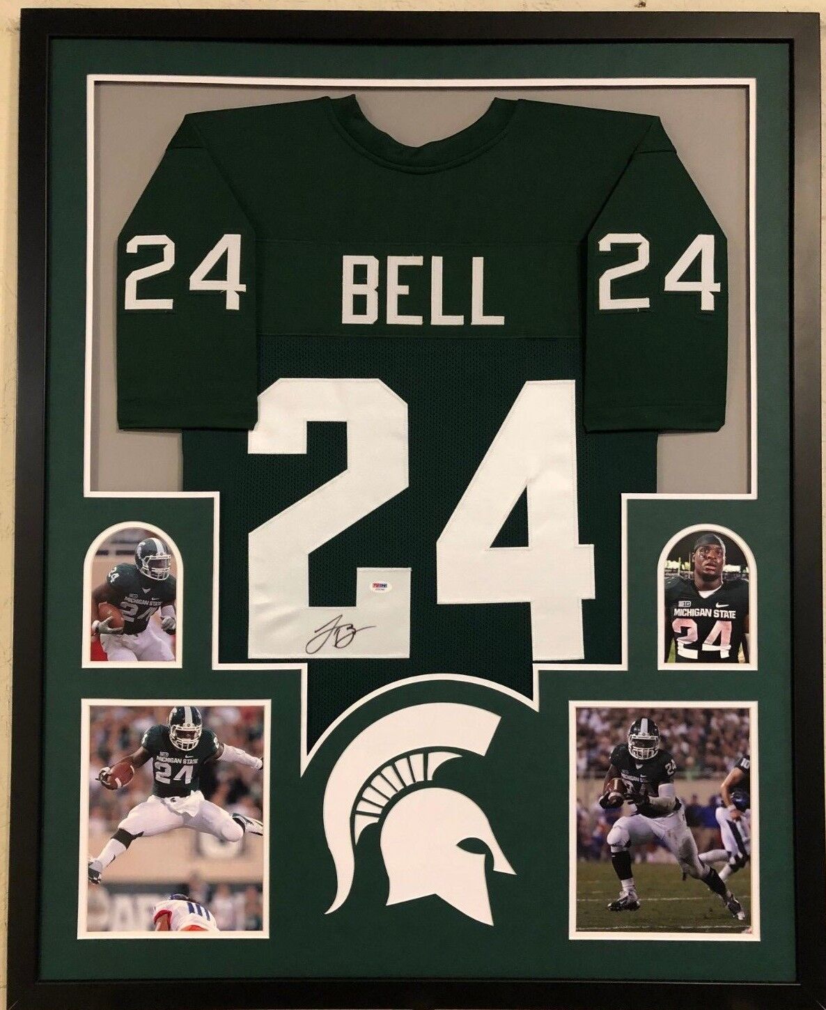 FRAMED MICHIGAN STATE SPARTANS LE'VEON BELL AUTOGRAPHED SIGNED JERSEY PSA COA