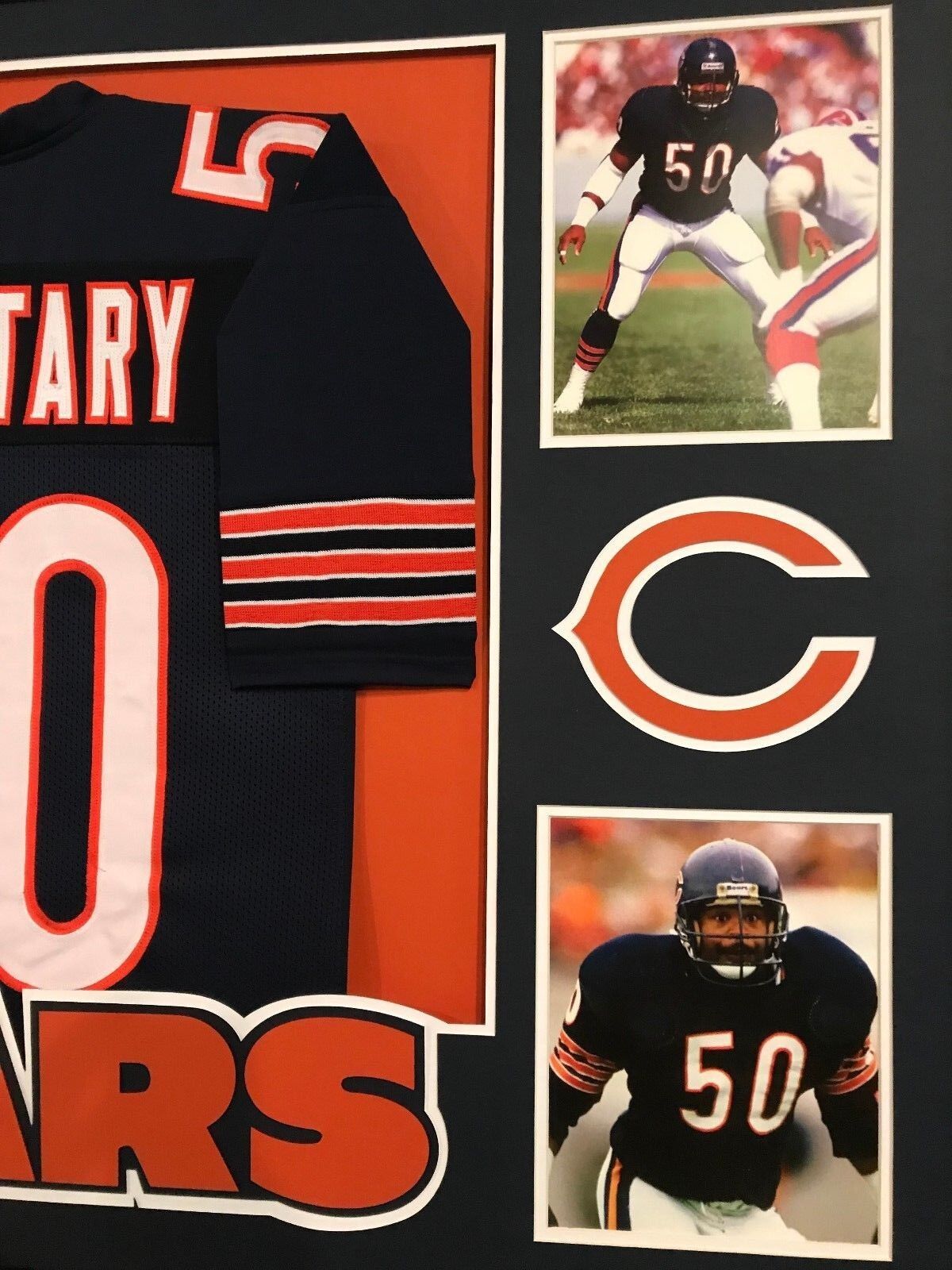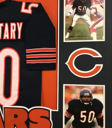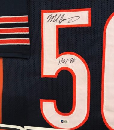 Custom Framed Mike Singletary hand signed inscribed “HOF 98” Chicago Bears custom jersey.Beckett Hologram and COA(#I88223)The authentication is from BAS. This signature is not authenticated by opinion but it is WITNESSED by a representative of BAS! 100% AUTHENTIC!!! The jersey has fully stitched numbers on the front and back. It is a great item and a must for all great sports fans!Stock photos are used for auctions. Will receive equal quality.This item is professionally framed, it measures 32”x40” inside , 42”x34” outside , using UV protective Acrylic glass for safe keeping and safe transport, team color matting, black moulding and hanging hooks on the back. All additional items in frame seen in pictures included. 100% ready to hang in your fan cave.