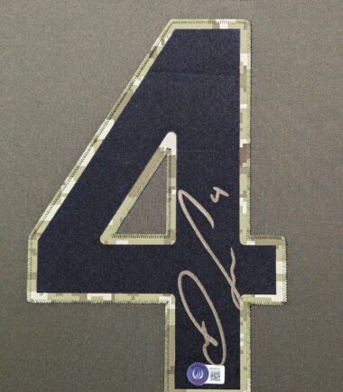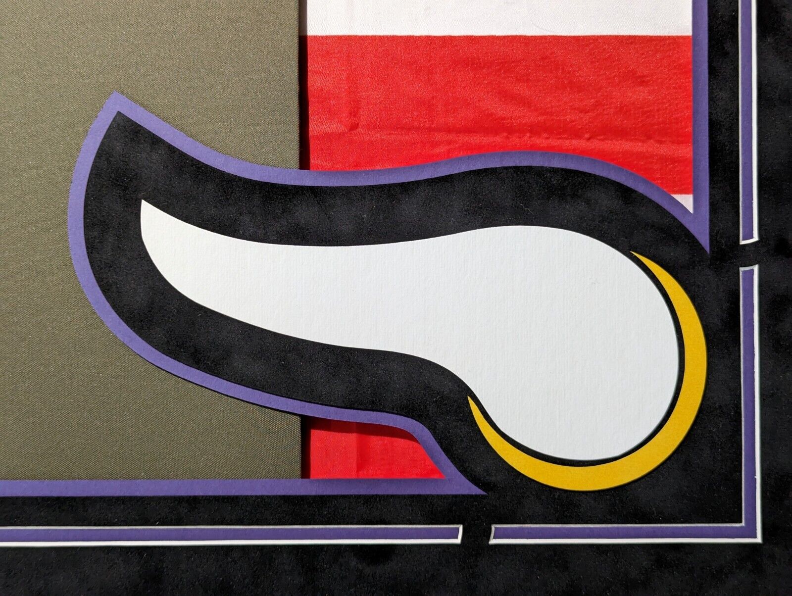 Custom Framed Dalvin Cook hand signed Minnesota Vikings Nike Salute to Service jersey framed in SUEDE with American Flag backgroundBECKETT HologramThe authentication is from BAS. This signature is authenticated by a representative of BAS! 100% AUTHENTIC!!! The jersey has fully stitched numbers on the front and back. It is a great item and a must for all great sports fans!This item is professionally framed, it measures 32”x40” inside , 42”x34” outside , using UV protective Acrylic glass for safe keeping and safe transport, team color SUEDE matting, black moulding and hanging hooks on the back. All additional items in frame seen in pictures included. 100% ready to hang in your fan cave.