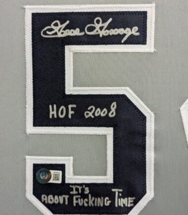 Custom Framed Goose Gossage hand signed N.Y. Yankees style custom jersey.Dual Inscriptions”HOF 2008″”IT’S ABOUT FUC*ING TIME”Beckett HologramThe authentication is from BAS. This signature is WITNESSED by a representative of BAS! 100% AUTHENTIC!!! The jersey has fully stitched numbers on the front and back. It is a great item and a must for all great sports fans!This item is professionally framed, it measures 32”x40” inside , 42”x34” outside , using UV protective Acrylic glass for safe keeping and safe transport, team color matting, black moulding and hanging hooks on the back. All additional items in frame seen in pictures included. 100% ready to hang in your fan cave. Shipping and handling is $49.99 to domestic United States using FedEx ground. All international shipping is made through Ebay global shipping. 6% sales tax applies to PA residents. We ship multiple times a week and your item will ship within 3 days of purchase. Local pick up is accepted. Returns accepted if item is not as described or damaged and must be returned within 7 days of delivery to buyer. All payments accepted through Paypal and are expected within 3 days of purchase. I aim to make every transaction smooth and will leave feedback, please do so in return. I will combine shipping where possible, so please wait for invoice on multiple purchases. Any questions please ask!! Thank you for looking!!! If you like the framing, feel free to ask how you can have your personal items framed. We also have wholesale pricing for dealers.