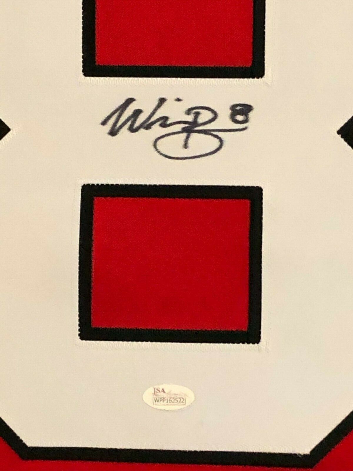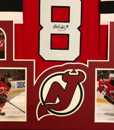 Custom Framed Will Butcher hand signed New Jersey Devils jersey.JSA Hologram and COA(#WPP162522)The authentication is from JSA. This signature is authenticated by a representative of JSA! 100% AUTHENTIC!!! The jersey has fully stitched numbers on the front and back. It is a great item and a must for all great sports fans!This item is professionally framed, it measures 32”x40” inside , 42”x34” outside , using UV protective Acrylic glass for safe keeping and safe transport, team color matting, black moulding and hanging hooks on the back. All additional items in frame seen in pictures included. 100% ready to hang in your fan cave.