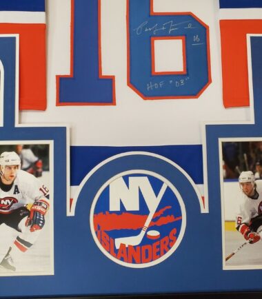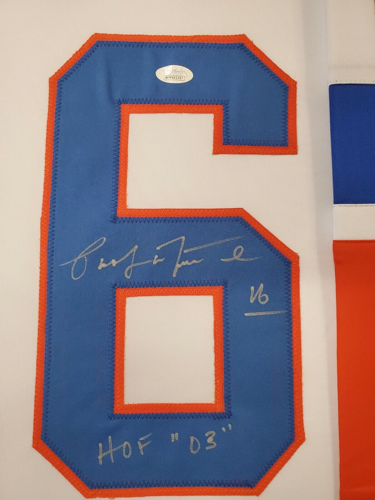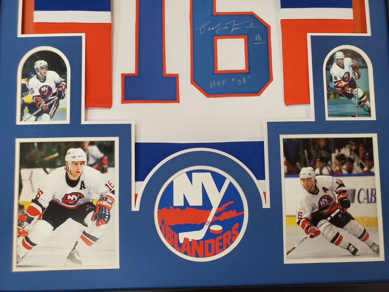 FRAMED PAT LAFONTAINE AUTOGRAPHED INSCRIBED HOF 03 N.Y. ISLANDERS JERSEY JSA COA