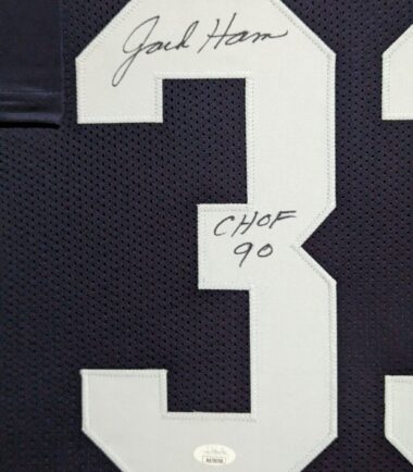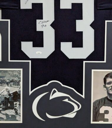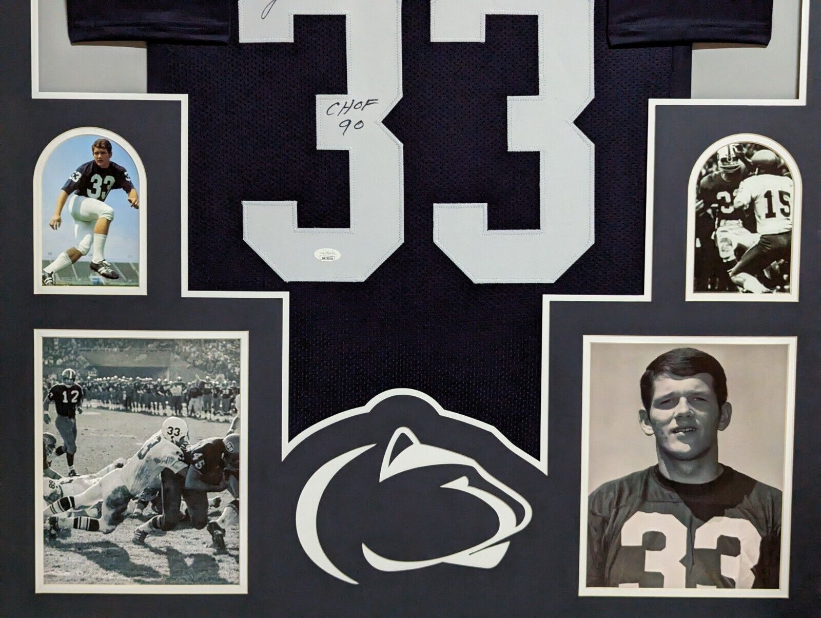 Custom Framed Jack Ham hand signed Penn State Nittany Lions style custom jersey.”CHOF 90″ Inscribed JSA COA The authentication is from JSA. This signature is authenticated by a representative of JSA! 100% AUTHENTIC!!! The jersey has fully stitched numbers on the front and back. It is a great item and a must for all great sports fans! This item is professionally framed, it measures 32”x40” inside , 42”x34” outside , using UV protective Acrylic glass for safe keeping and safe transport, team color matting, black moulding and hanging hooks on the back. All additional items in frame seen in pictures included. 100% ready to hang in your fan cave. Returns accepted if item is not as described or damaged and must be returned within 7 days of delivery to buyer.
