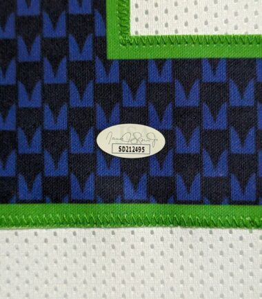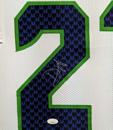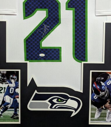Custom Framed Devon Witherspoon hand signed Seattle Seahawks style custom jersey.JSA Hologram and COAThe authentication is from JSA. This signature is WITNESSED by a representative of JSA! 100% AUTHENTIC!!! The jersey has fully stitched numbers on the front and back. It is a great item and a must for all great sports fans!Stock photos are used for auctions. Will receive equal quality.This item is professionally framed, it measures 32”x40” inside , 42”x34” outside , using UV protective Acrylic glass for safe keeping and safe transport, team color matting, black moulding and hanging hooks on the back. All additional items in frame seen in pictures included. 100% ready to hang in your fan cave. Shipping and handling is $49.99 to domestic United States using FedEx ground. All international shipping is made through Ebay global shipping. 6% sales tax applies to PA residents. We ship multiple times a week and your item will ship within 3 days of purchase. Local pick up is accepted. Returns accepted if item is not as described or damaged and must be returned within 7 days of delivery to buyer. All payments accepted through Paypal and are expected within 3 days of purchase. I aim to make every transaction smooth and will leave feedback, please do so in return. I will combine shipping where possible, so please wait for invoice on multiple purchases. Any questions please ask!! Thank you for looking!!! If you like the framing, feel free to ask how you can have your personal items framed. We also have wholesale pricing for dealers.