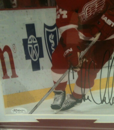 This is a Chris Chelios signed, and custom framed 8×10 Detroit Redwings photo authenticated by JSA. Item comes with authentication sticker. Ebay certified, JSA is a top 3rd party authenticator that guarantees signature to be 100% authentic. This item is professionally framed, using 2.5mm glass, black moulding and hanging hooks on the back, also includes nameplate and 4×6 photo. Picture shows safety wrap and corners for protection. 100% ready to hang on your wall. epted if item is not as described or damaged and must be returned within 7 days of delivery to buyer. All payments accepted through Paypal and are expected within 3 days of purchase. 6% sales tax applies to PA residents. Any questions please ask!! Thank you for looking!!! LIke the framing, feel free to ask how to have your items framed.