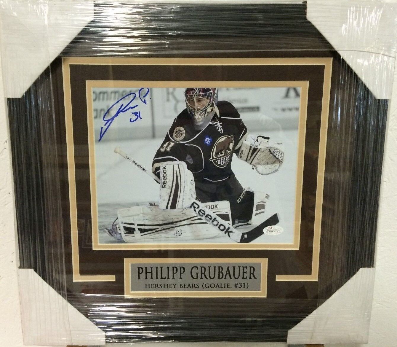 Custom Framed Philipp Grubauer hand signed 8×10.JSA Hologram and COA(#W561412) The authentication is from JSA. This signature is not authenticated by opinion but it is WITNESSED by a representative of JSA! 100% AUTHENTIC!!! It is a great item and a must for all great sports fans!This item is professionally framed, using team color matting, black moulding and hanging hooks on the back. All additional items in frame seen in pictures included. 100% ready to hang in your fan cave.