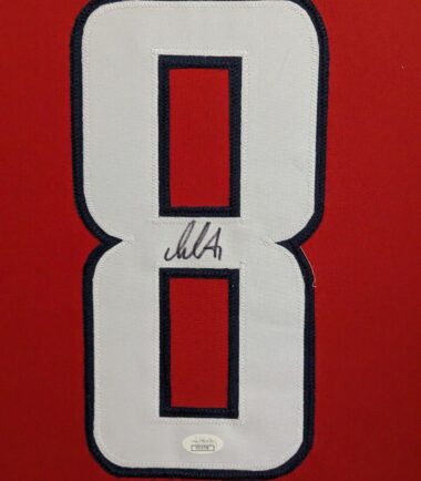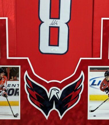 Custom Framed in SUEDE Alex Ovechkin hand signed Washington Capitals style custom jersey. JSA Hologram and COA The authentication is from JSA. This signature is WITNESSED by a representative of JSA! 100% AUTHENTIC!!! The jersey has fully stitched numbers on the front and back. It is a great item and a must for all great sports fans! This item is professionally framed, it measures 32”x40” inside , 42”x34” outside , using UV protective Acrylic glass for safe keeping and safe transport, SUEDE team color matting, black moulding and hanging hooks on the back. All additional items in frame seen in pictures included. 100% ready to hang in your fan cave. Returns accepted if item is not as described or damaged and must be returned within 7 days of delivery to buyer.