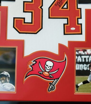 FRAMED TAMPA BUCCANEERS DEXTER JACKSON SIGNED INSCRIBED JERSEY JSA COA