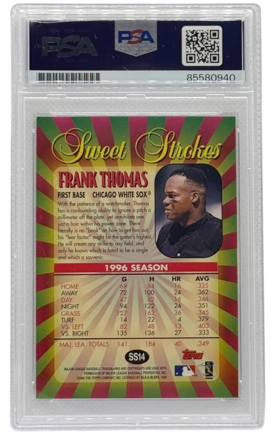 Frank Thomas Autographed 1996 Topps Sweet Strokes Card #SS14 PSA Authenticated