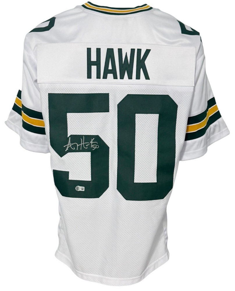 Green Bay Packers A.J. Hawk Autographed Pro Style White Jersey BAS Authenticated