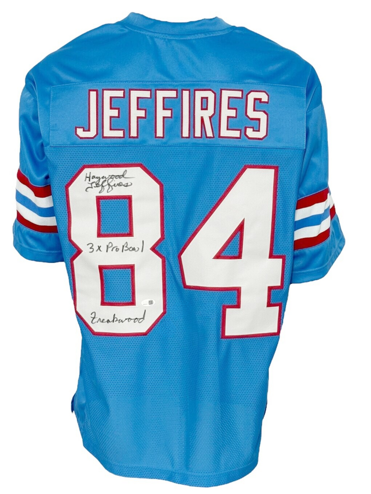 Houston Oilers Haywood Jeffries Autographed Pro Style Blue Jersey JSA Authenticated